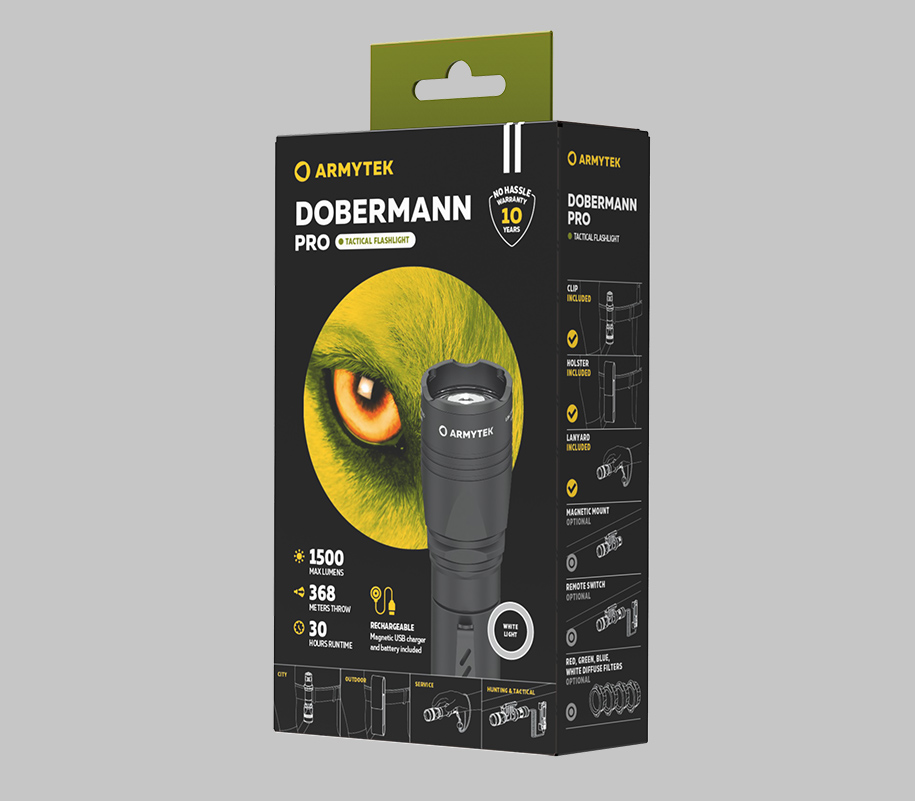 Dobermann Pro — это мощный и универсальный фонарь, который можно использовать не только для тактических задач, но и для повседневных нужд. С ним можно легко справиться с любыми задачами, будь то охота, патрулирование или просто прогулка в темное время суток.