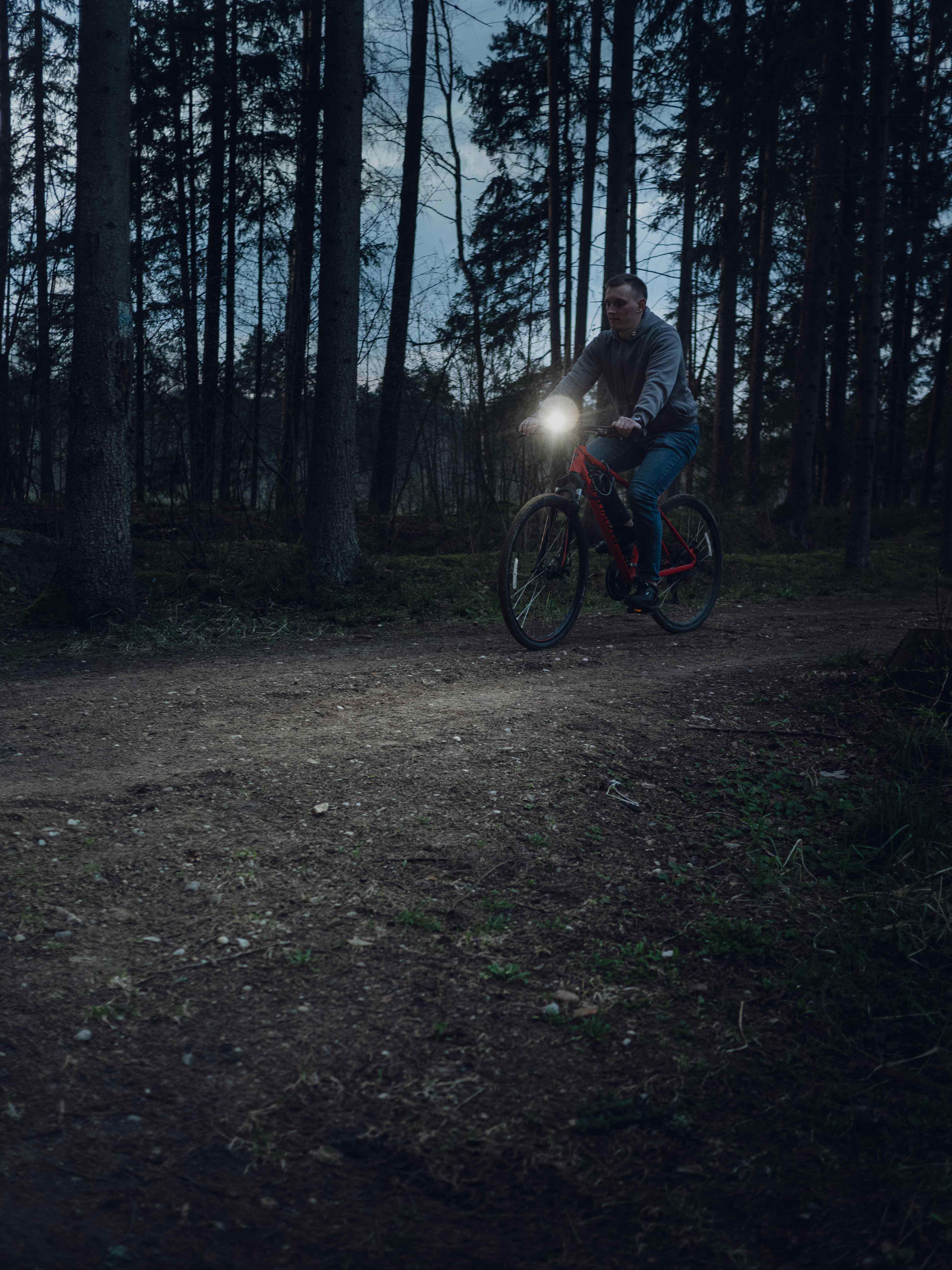 - Красный свет яркостью 230 люмен эффективен в условиях тумана или низкой видимости. Он может использоваться как задний велогабарит или мигающий предупредительный сигнал. Красный свет не спугнёт животных, рыбу или насекомых и комфортен для ночного зрения.