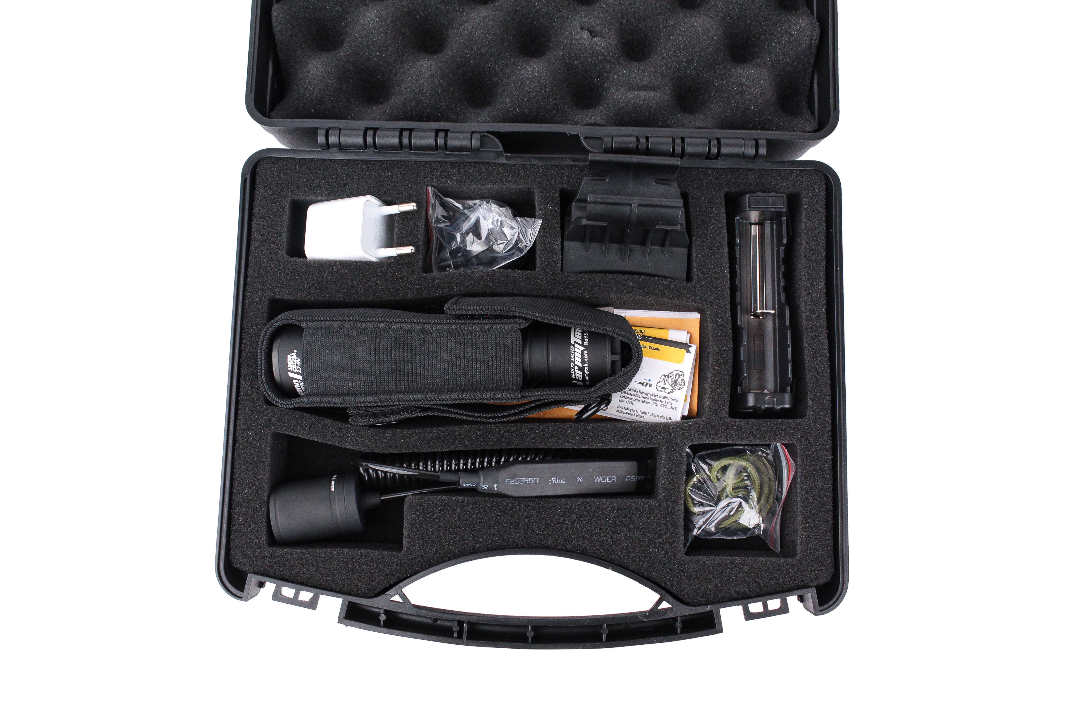 Dobermann Hunting Kit создан для обеспечения максимального удобства: в комплект входит всё, что нужно для комфортного использования фонаря сразу после покупки. В кейсе находятся: